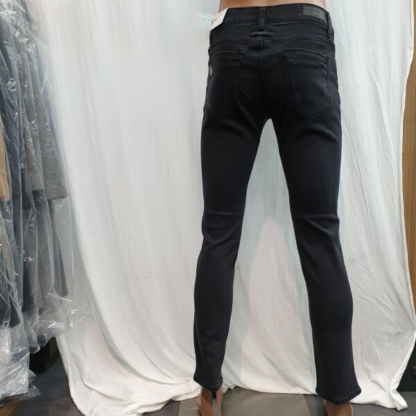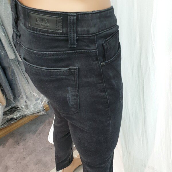 2018년 신상입니다. 기본 컬러, 기본 디자인의 블랙 기모 데님으로 뒤허리 안쪽에 밴딩처리가 되어있어 허리 착용감이 편한 아이템입니다.