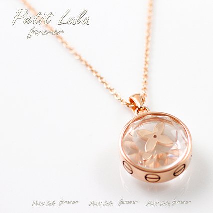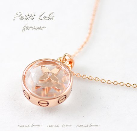 洗練されたカットが施されたドームの中に可愛く揺れる4枚花を1輪飾った愛らしくもあり