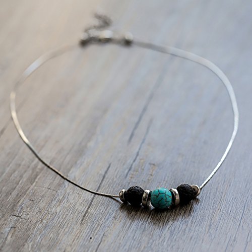 Artio Lava Pelelith Necklace Turquoise Necklace Chain with Pelelith Beads for Male and Female