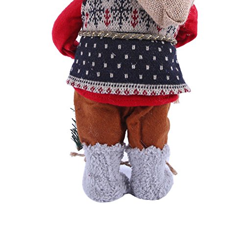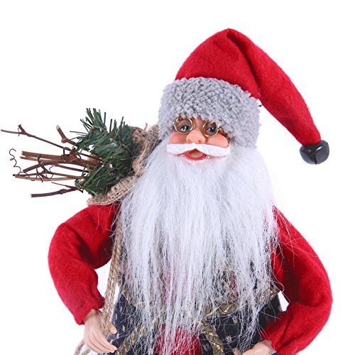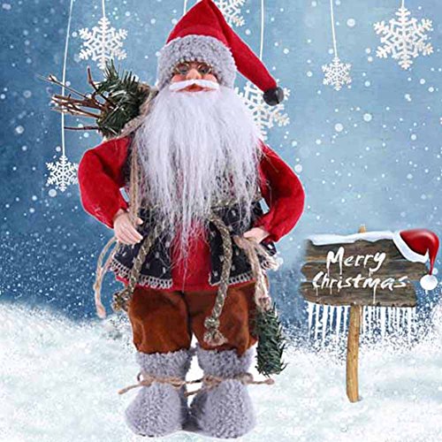 - Design: Wearing a very traditional red suit ,this free standing Santa Claus comes complete with a sack and even a little light or spruce leaf in one arm.lovely and delicate,nice shape always welcomed by most child and adults,pretty and stylish ornament stuffed toy Christmas decoration is a great gift,Birthday gift,Valentine gift,Thankgiving Day gift,Anniversary gift