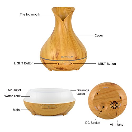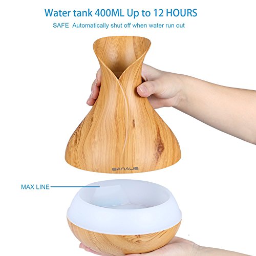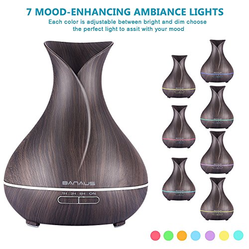 BANAUS Banaus&Reg;Aroma Essential Oil Diffuser Humidifier Air Purifiers 400ml Ultrasonic Cool Mist and Colorful LED Lights for Bedroom/Living Room/Office Use Decoration Vase/Yoga/Spa/Baby