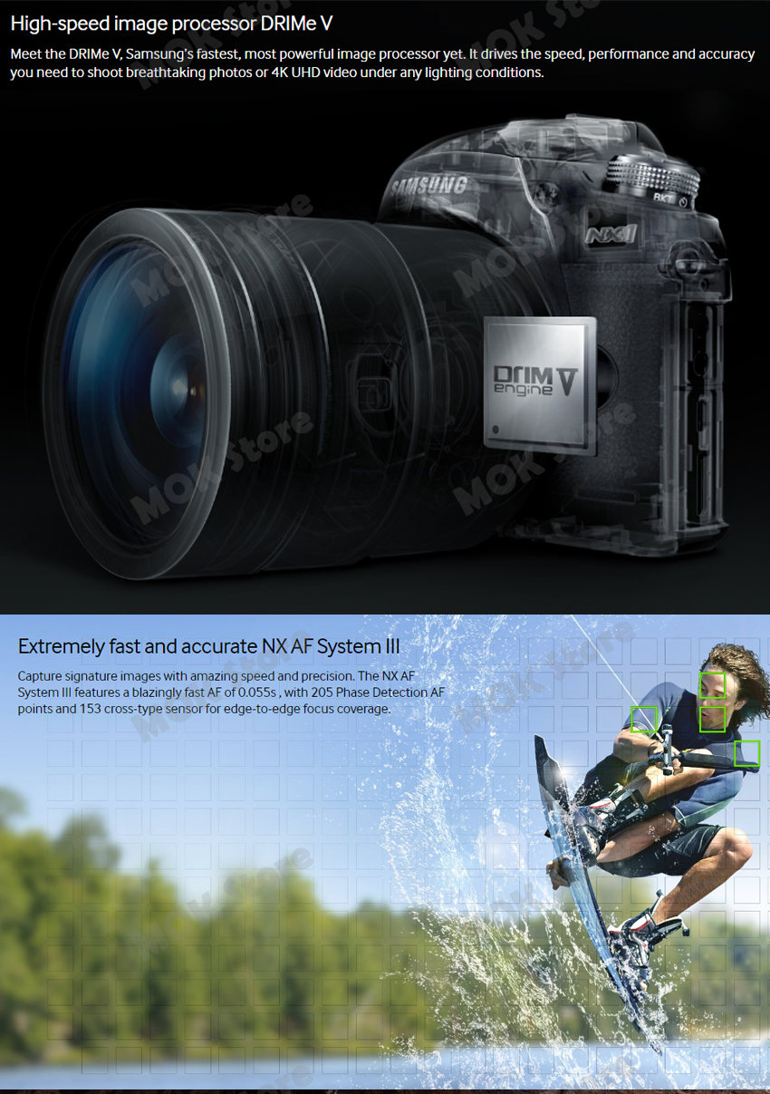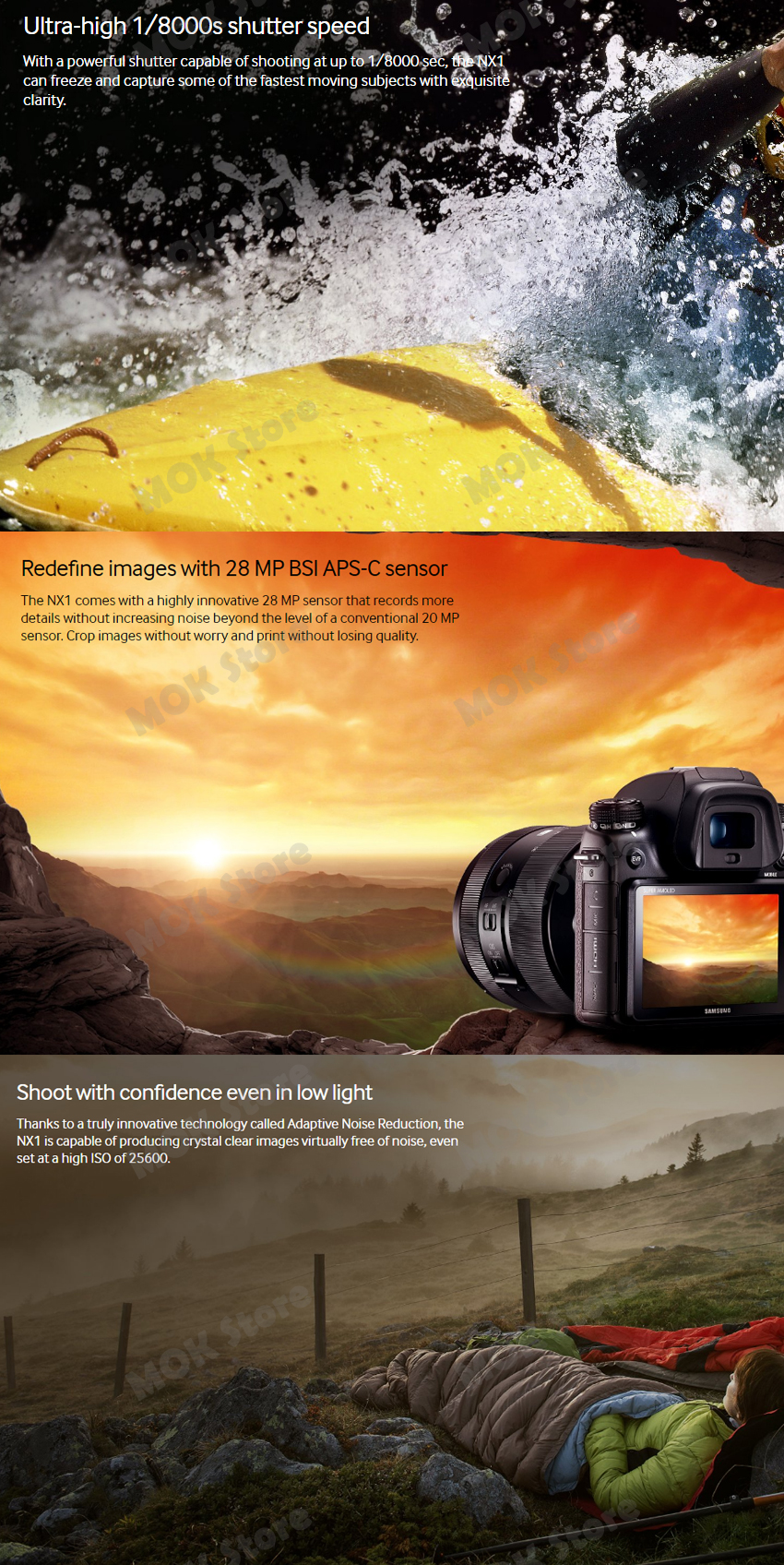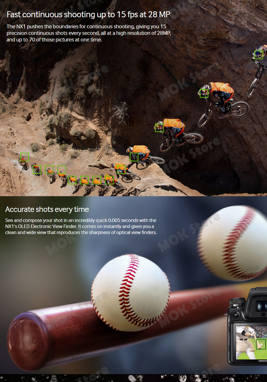 The NX1 shoots 15 continuous shots every second at 28MPs, and up to 70 shots at one time.