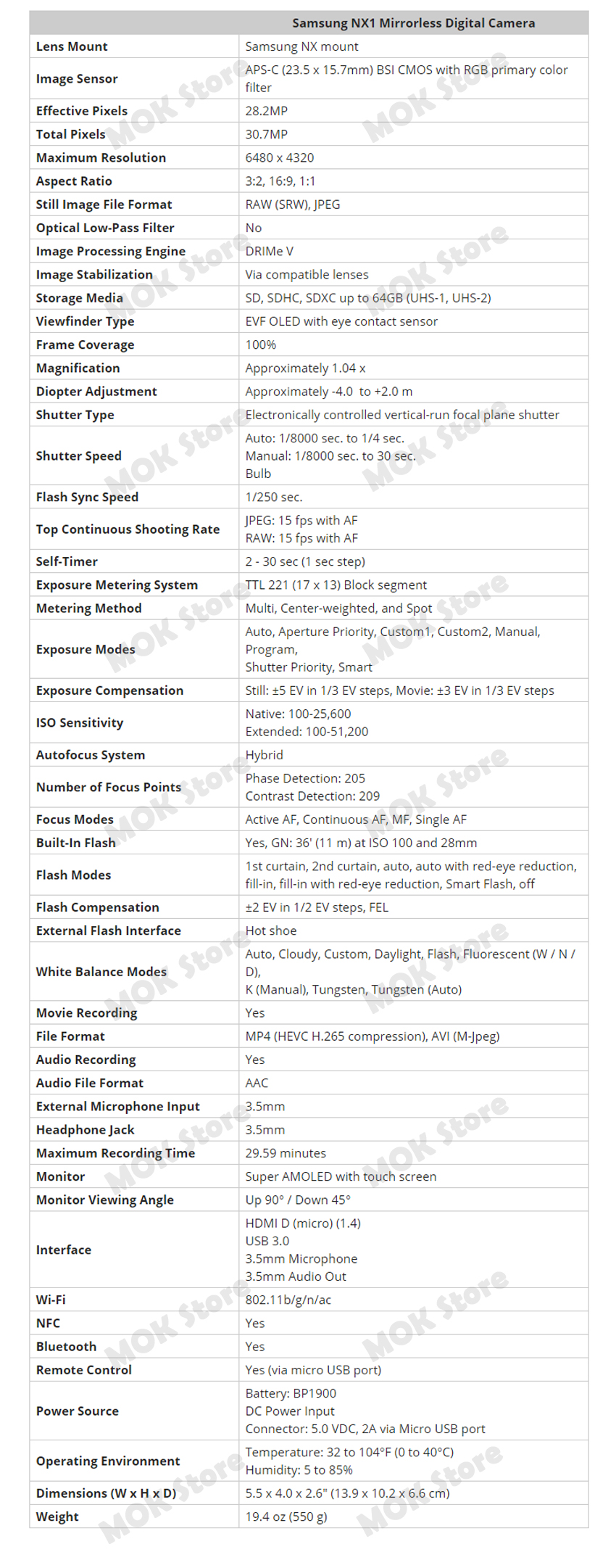 Samsung NX1 4K 28.2 MP Prime Dgt Camera