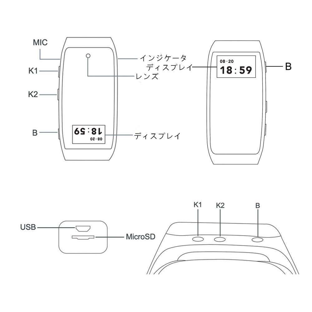 1080P wearable Smart bracelet type video camera pedometer watch incoming phone notification SMS notification sports watch spy camera high picture quality hidden camera surveillance recording, recording, photography, negotiation, conference, lecture security evidence photography Japanese handling
