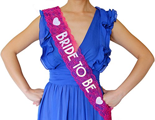Bride to Be Lace Sash - Bachelorette Party, Bridal Shower & Wedding Party Accessory (Pink & Silver)