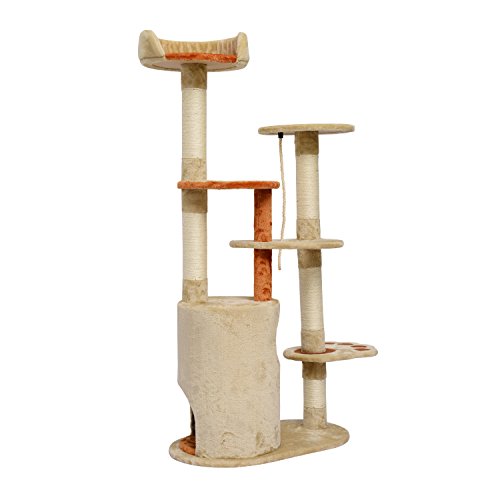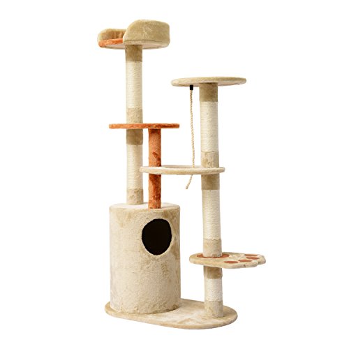 -. Title : Pawhut 55" Cat Tree Scratching Post Condo Furniture - Beige/Brown