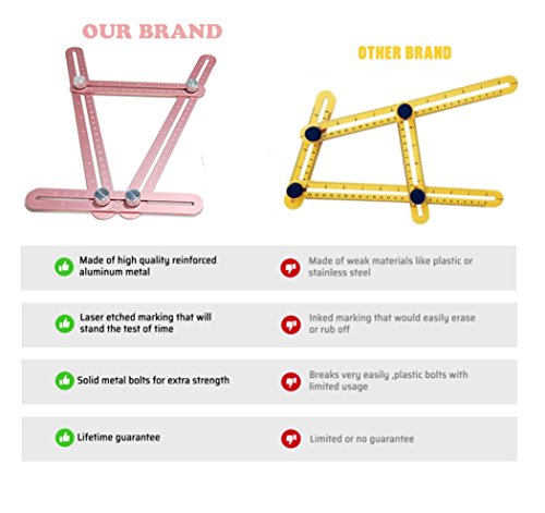 Template Tool, Multi-Angle Measuring Ruler Template Measures All Angles and Forms for Handymen, Builders, Craftsmen, Carpenters, Roofers(pink)