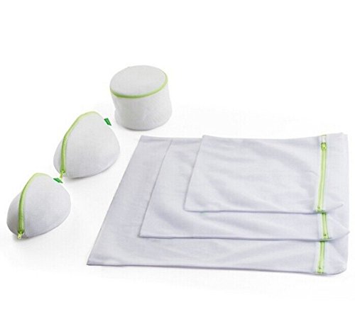 Bekith Set of 6 Laundry Mesh Wash Bags Set (Small 1, Medium 1, Large 1, Bra Wash Bag 3) - Wash Bags for Blouse, Hosiery, Stocking, Underwear, Bra and Lingerie, Travel Laundry Bag (White)