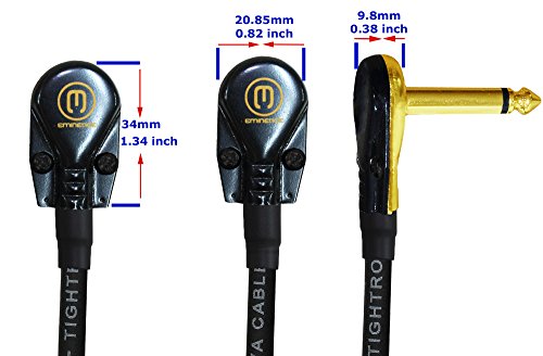 Heavy duty construction using the lowest profile pancake design in the market. High-End 24k Gold plating to ensure increased conductivity and tarnish resistance. Custom Boot included to protect the cable from damage due to handling stresses (no other cable construction of this type comes with a boot). This low-profile patch cable will save much needed space on your pedal board. The Black-Gold connector design will also visually compliment your gear and will look extremely sleek in your rig.