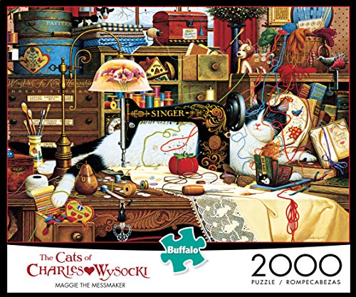 -. Binding : Toy -. Brand : Buffalo Games -. EAN : 0079346020294 -. Feature : 2000 piece jigsaw puzzle / Finished size is 38.5 x 26.5 inches / Includes bonus poster for help in solving / Manufactured from premium quality materials / Made in the USA -. IsAdultProduct : 0 -. ItemPartNumber : 2029 -. Label : Buffalo Games -. Manufacturer : Buffalo Games -. Model : 2029 -. MPN : 2029 -. PackageQuantity : 1 -. PartNumber : 2029 -. ProductGroup : Toy -. ProductTypeName : TOYS_AND_GAMES -. Publisher : Buffalo Games -. Studio : Buffalo Games -. Title : Buffalo Games 2000 piece: Maggie the Messmaker - 2000 Piece Jigsaw Puzzle by Buffalo Games -. UPC : 079346020294 -. Warranty : 90 day warranty against manufacturer defects