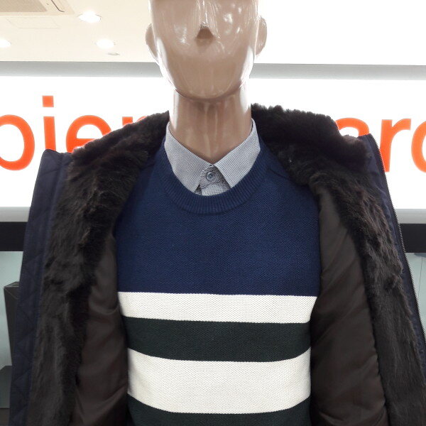 배색이모피(천연토끼)로외관이고급스럽고보온성이좋아서따뜻하고관리가편하며코디가용이함
