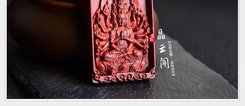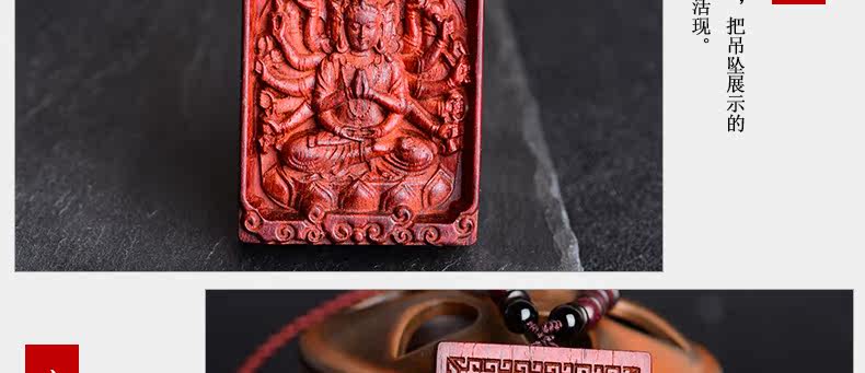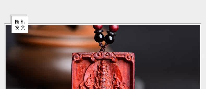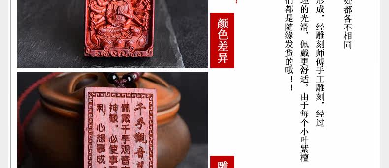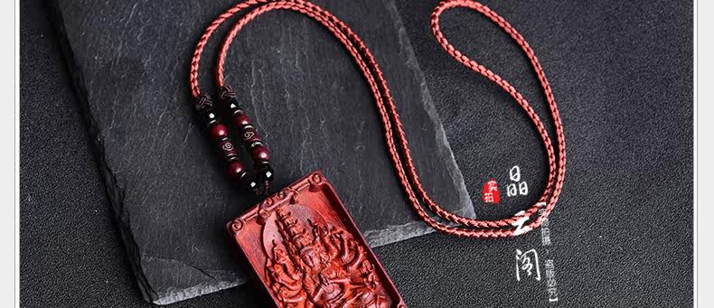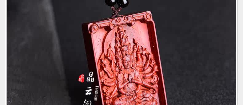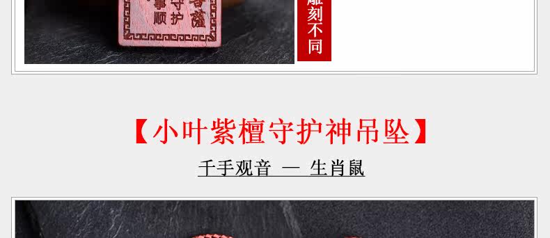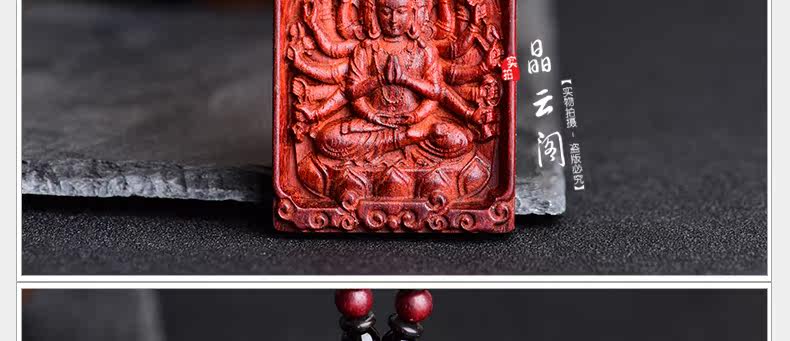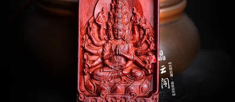开光 小叶紫檀生肖八大守护神吊坠 千手观音菩萨属鼠本命佛项链