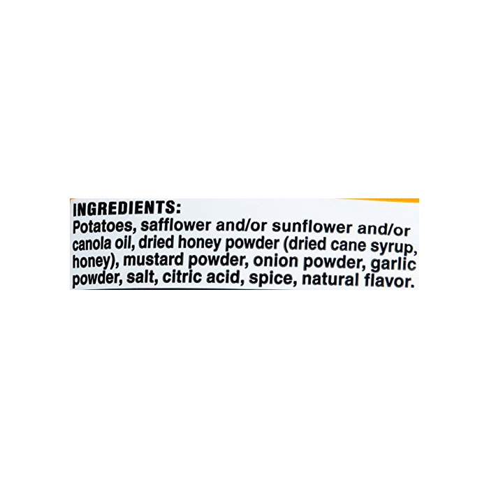 원재료:감자(유전자 조작이 아니다)고, 식물성 기름지,벌꿀 파우더(하 찾 기미 시럽,벌꿀)고, 마스터 드 파우더(식초,겨자 종,소금,말《도데키스토린》)고, 오니(귀신) 온 파우더,마늘 파우더,소금,향신료,구연산,향료,가공 전분,《우콘》색소,파프리카 색소