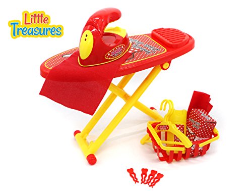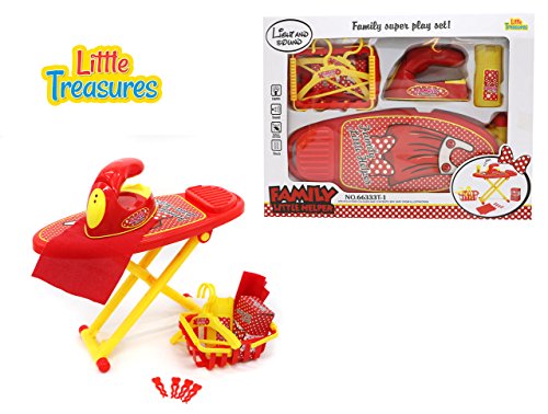 Studio : LITTLE TREASURES Publisher : LITTLE TREASURES Binding : Toy Product Description A beautifully designed toy set from Little Treasures that comes with a iron and ironing board with a carry basket full of cleaning accessories. Kids will enjoy pretend press them on their ironing boards and hang them afterwards or fold them up and load them into the carry basket. Bringing this home with excite children and encourage them to build an interest in looking after their important belongings. 0