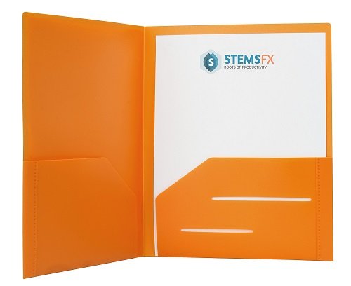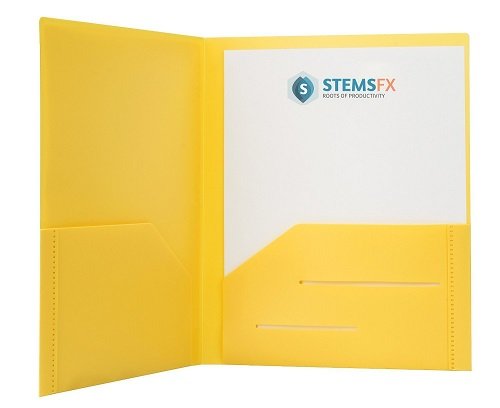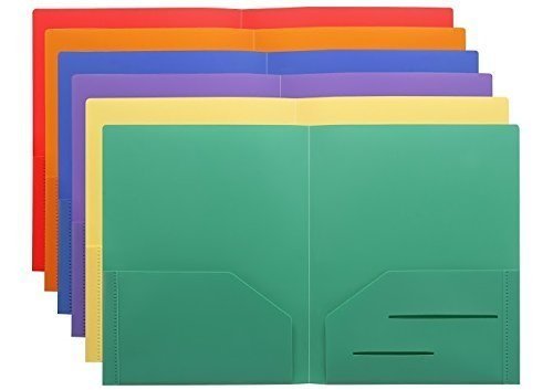 STEMSFX Heavy Duty Plastic 2 Pocket Folder (Assorted Colors Pack of 6) For Letter Size Papers, Includes Business Card Slot
