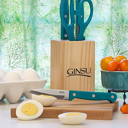 Ginsu Essential Series 5스테인레스 스틸 톱니 모양 부엌칼 나이프 세트커트러리 세트with Teal키친 부엌칼 나이프 를 자연스럽게 블럭,05155otds