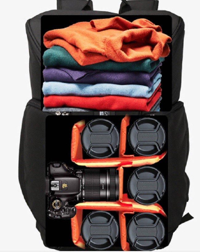 大容量の収納スペースで、カメラや機材の他にもたくさんの荷物を収納でき。