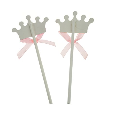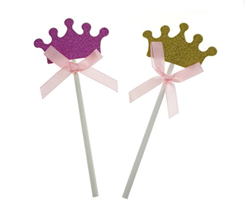 - Each cake topper is decorated with pink ribbon bow, and the crown on the cake topper is glitter.
