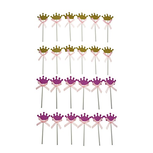Shxstore Pink and Gold Princess Crown Cake Cupcake Toppers Picks, 24 Counts