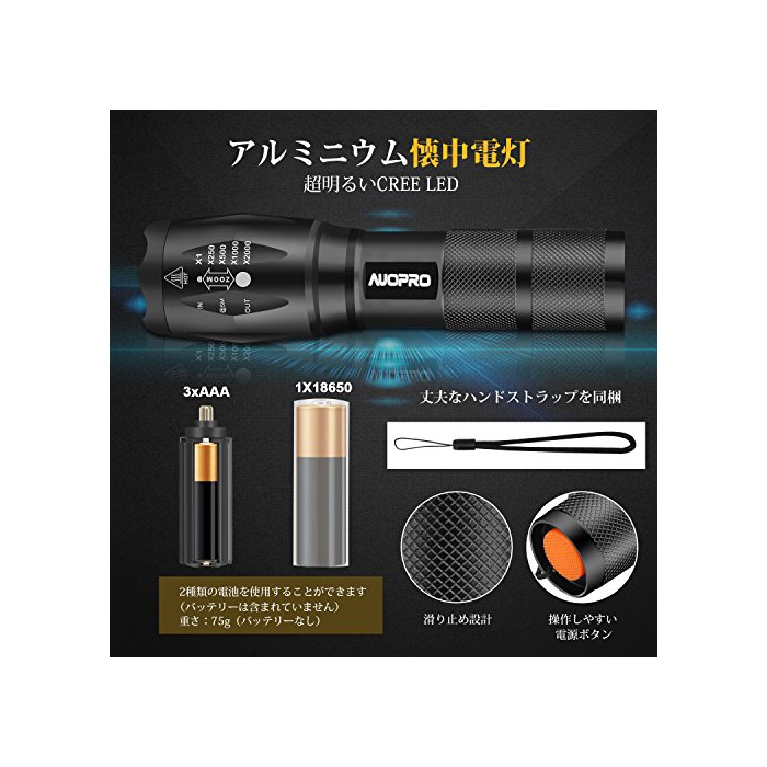 【줌 기능】헤드 부분을 회전 시키는 것에 따라 조사 범위를 넓히거나,좁히거나 하는 것 를 할 수 있습니다.최장 조사 거리300M과 최대 출력광 속800루멘으로 달고 있습니다.초높음 휘도의 광다발이 야수를 격퇴할 수 있고, 야시골을 통행하는 것으로(에) 편리합니다.
