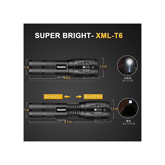 원본상품명: AUOPRO LED中電 4セット 防水 800ルメン 高輝度 ズム式5モド ハンディライト 5モド 軍事用 力 アウトドア用 停電·防災策