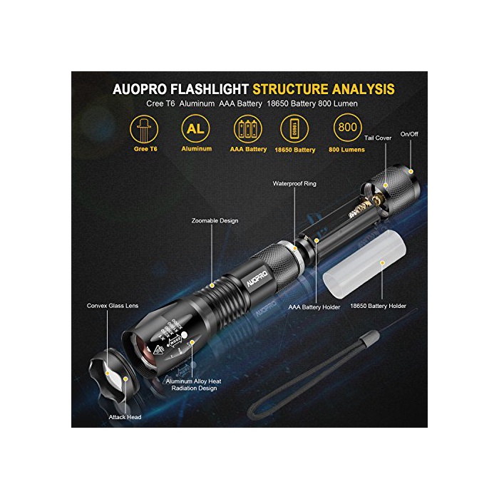 AUOPRO LED회중전등 4세트 방수 800루멘 고휘도 줌식5모드 핸디 라이트 5모드 군사용 강력 아웃도어 전용 정전·방재 대책