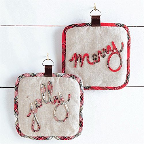 Mud Pie White Tartan Pot Holder - "Jolly"