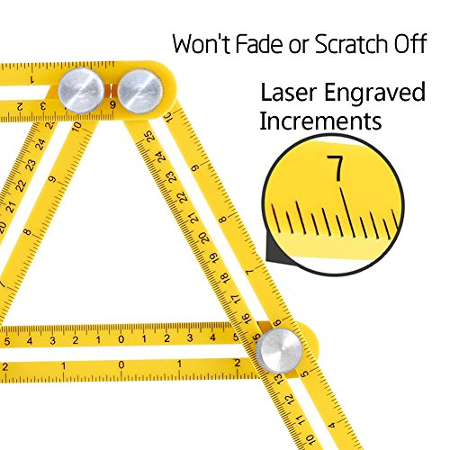 - 3. MULTI-FUNCTIONAL ANGLE RULER: An essential tool for every toolbox. This versatile tool is perfect instrument to create plumb cuts, arches, bull eyes, roof joists and any other project you need to be done. It is handy to create layout design in stone, wood, brick, lumber, laminate and more! Ideal tool to retile your bathroom floor, transform your backyard with a custom brick patio