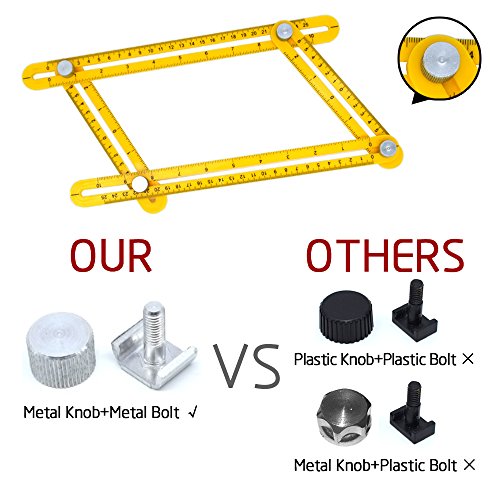 - 1. METAL KNOBS AND METAL BOLTS: This is NOT an Angle-izer with cheap plastic bolts or knobs, our improved angle template tool with durable aluminium tightening mechanism which is extremely strong and gives you the precision and security you need for your projects