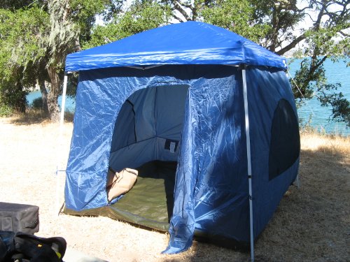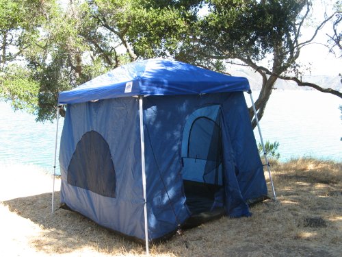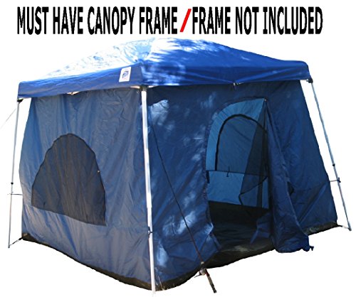 8.5 FEET OF HEAD ROOM WITH FULL FABRIC - WATER RESISTANT ROOF NOT CHEAP MESH SCREEN (Able To Stand Up, Walk Around and Stretch Out, Even In The Corners) MUST HAVE CANOPY FRAME! FRAME NOT INCLUDED Nearly any 10'x10' (slant leg) canopy or gazebo with a vaulted ceiling can be used as a cover and the support for this tent.