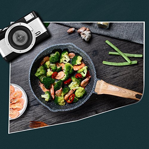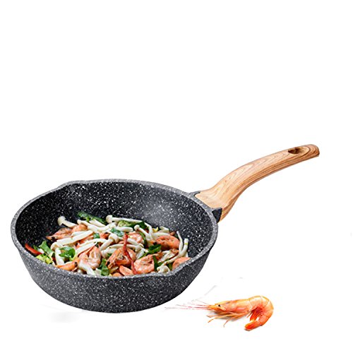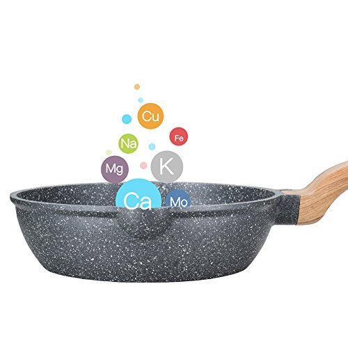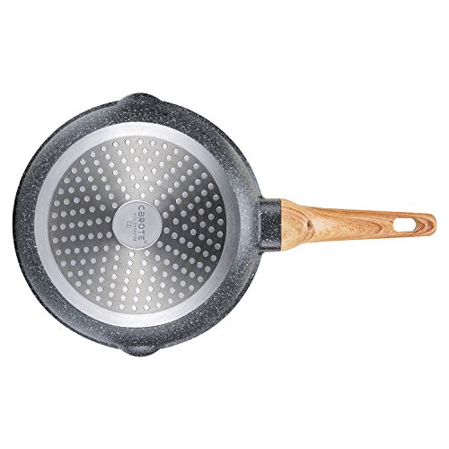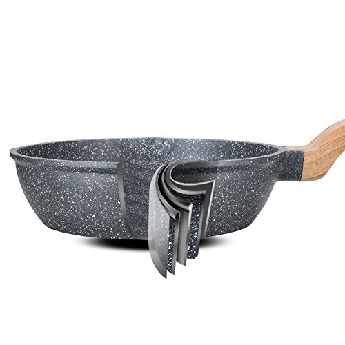 The original and highest nonstick performance from Swiss brand ILAG, which is one of the most famous healthy coating brand in the world, Carote cookware deserved this exclusive cooperation with ILAG, to satisfy the customer needs at the top level. This essential woody collection, is a range offer ultra use and durable stone nonstick, with extremely scratch-resistant, increasing the lifetime of deep frying pan/wok. The easy-to-clean surface ensures that no time is wasted on washing and more time can be spent on cooking. Carote and ILAG's innovation of this rough surface, which is due to the typical stone pigment that enhanced the abrasion and let the pan be more pratical. Three times more energy efficient than other meterial, the aluminum is the suitable weight, eliminating any arm strain. The ergonomic, stay cool handle offers a comfortable grip for maximum control. With Carote, experience the ease of nonstick expertise.Feature