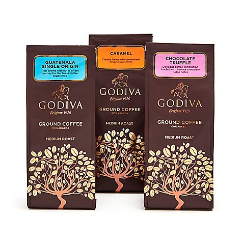 -. Feature : Includes GODIVA Caramel, Chocolate Truffle and Breakfast Blend Coffees / Perfect as a hostess or holiday gift / Set of 3 / 10 oz. Each
