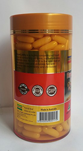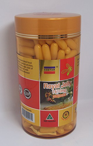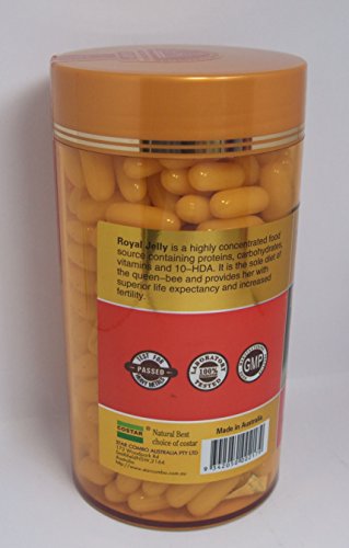 Royal Jelly is a power pack of nutrition, designed by nature to create the queen bee and used by humans to maintain maximum health. Traditionally recognized for its ability to increase vitality, improve digestion and condition the skin, hair, and nails. New benefits of taking Royal Jelly, such as improved liver function, relieving stress, lowering cholesterol, and anti-inflammatory and anti-bacterial properties, are also being discovered. This Royal Jelly contains 6% 10-HDA. And what is 10-HDA? 10-HDA is only found in Fresh Royal Jelly and can not be made artificially. 10-HDA, which has many uses and is renowned for being the most important chemical in Fresh Royal Jelly, is responsible for many of the health benefits of Royal Jelly. Research shows that 10-HDA and Royalactin (both only found in Fresh Royal Jelly) destroys positive gram bacteria like Streptococcus and Staphylococcus which can cause serious illnesses. Pack size: 365 Capsules Directions: Take 1 to 2 capsules daily, or as recommended by a healthcare professional. If symptoms persist, consult your healthcare professional. This product is a natural food supplement and should not replace a balanced and nutritious diet. Warnings: Not to be taken by asthma and allergy sufferers. Not suitable for children Formulation: Each capsule contains: Royal Jelly 1610mg 6% 10-HDA Benefits: Increasing endurance, stamina and vitality Relieving the effects of stress. Enhancing skin tone, hair and nail strength Improving wound healing Improving general well-beingFeature