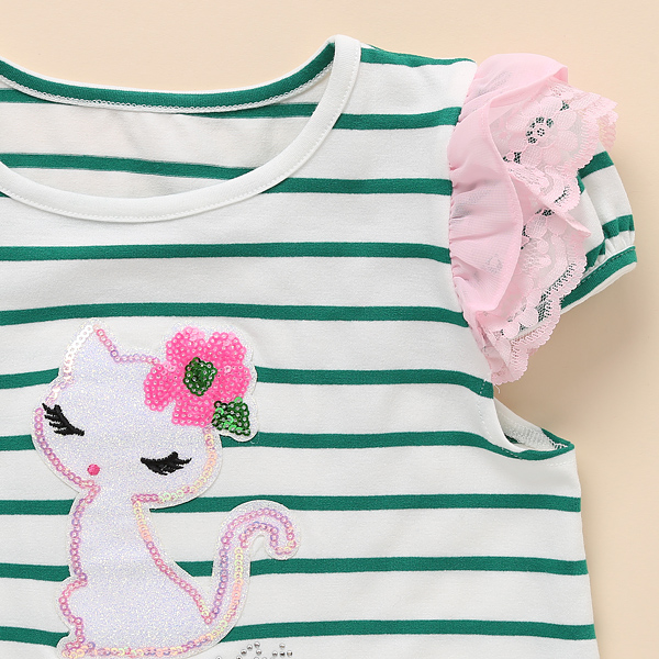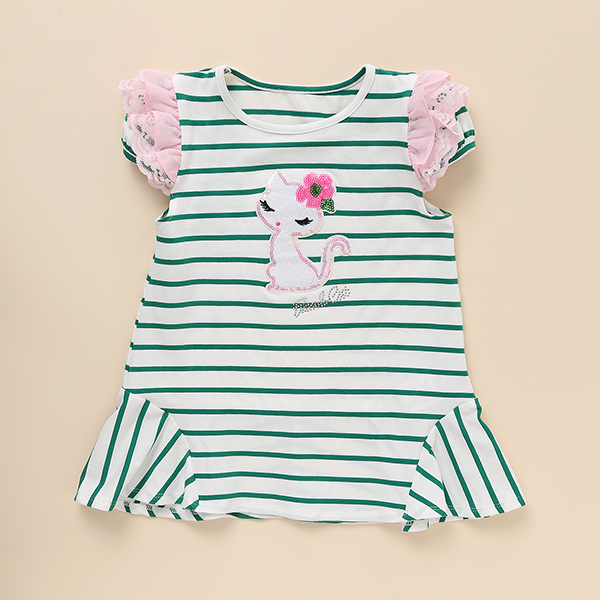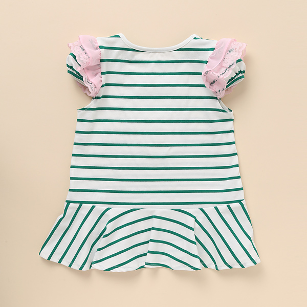 그린스트라이프로 나온 원피스입니다. 핑크프릴소매와