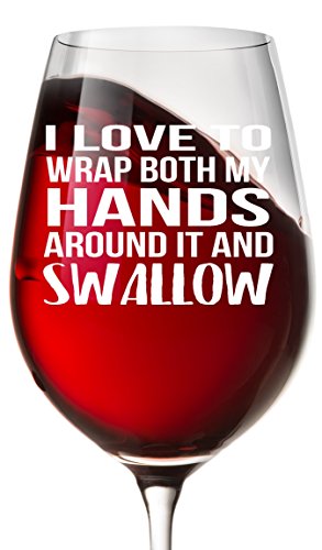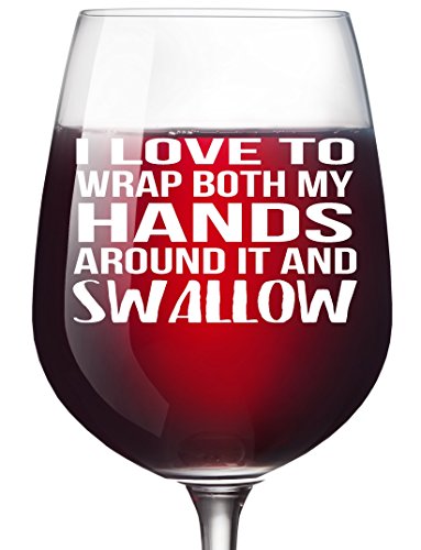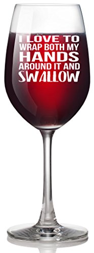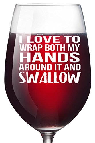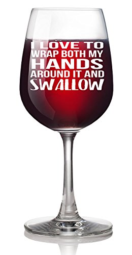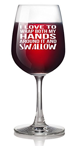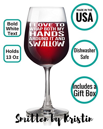Studio : Smitten by Kristin Publisher : Smitten by Kristin Product Description This 13 ounce Libby glass says "I LOVE TO WRAP BOTH MY HANDS AROUND IT AND SWALLOW". We just can't get enough of this novelty wine glass! It's funny and makes the perfect gift for someone with a great sense of humor. It's both funny and dirty..and we couldn't love the combination better! 0