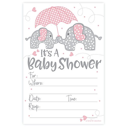 Pink Elephant Girl Baby Shower Invitations (20 Count) with Envelopes