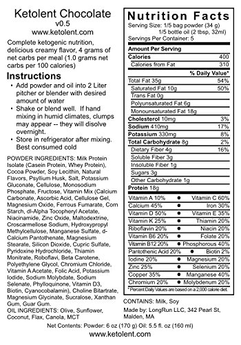 Ketolent nutritionally complete ketogenic low carb shake (Chocolate - One Meal Sample)
