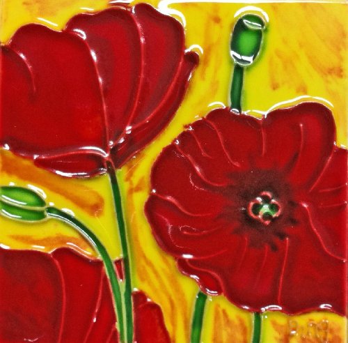 Continental Art Center SD-005 4 by 4-Inch Red Poppy Ceramic Art Tile