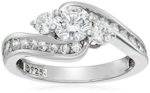 -. Title : Platinum-Plated Sterling Silver Swarovski Zirconia Three -Stone Ring