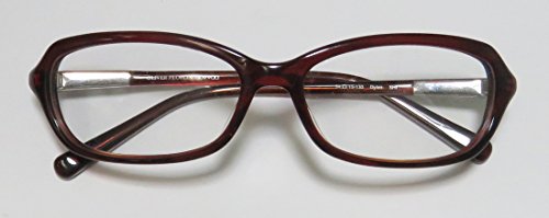 Brand: Oliver Peoples Style: Dylan Gender: womens Frame Type: full-rim Frame Material: plastic Case: eleganzo The frame is fully rx-able and can be fitted with prescription and/or tinted lenses at most optical stores. Please note that factory demo lenses have a logo stamped on them in ink. This frame provides comfortable fit and flatters a variety of face shapes. These eyeglasses are crafted from high quality, durable premium acetate plastic. Please keep in mind that original case is not included with this frame. However, we will include an Eleganzo hard case at no extra charge to keep your eyeglasses protected. The glasses are made in Japan. These eyeglasses retail for $420.00 at upscale stores that carry designer frames. Save your money and get them here! The pictures cannot fully reflect the beauty of this piece of designer eyewear. These eyeglasses look even more elegant in real life. 0 |