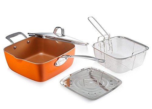 GOTHAM STEEL 9.5 Inch Deep Titanium and Ceramic Square Pan. About the Product Gotham Steel is the first product of its class to actually utilize high-grade titanium and ceramic as surface finishing. This sophisticated combination not only ensures maximal durability it also allows for multi-fictional, all-around usage. Titanium plus Ceramic Coating FAQs High-heat threshold to sear perfectly browned steaks! Everything just slides right off, even burnt chocolate and cheese. Food flavor is not altered when cooking tomato-based or any acidic food products thanks to the ceramic component! The non-stick surface cleans easy! Versatile: for stove-top cooking, or baking! Rust-proof all over. Coating doesn't peel off with constant usage and washing.Feature