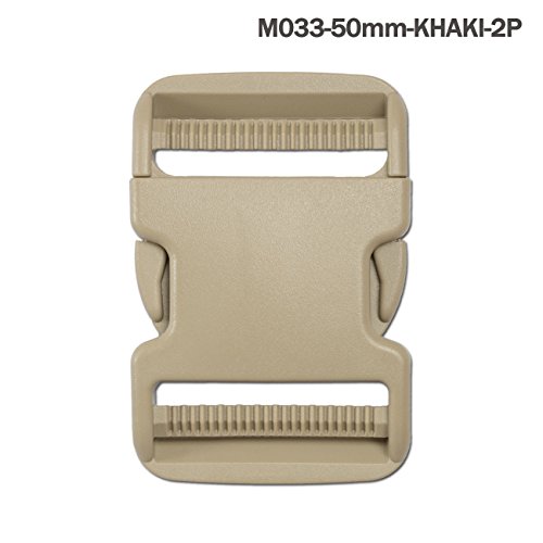 Premium 2"(50mm) Flat Dual Adjustable Side Release Buckles (2PCS, khaki)