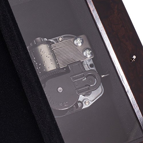 Velvet lined inside and watch music mechanism play through glass on inside of box