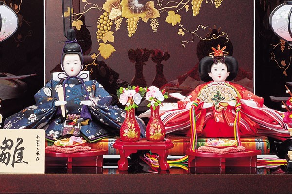 親御様、お子様、縁者様の健康と発展を願いながら職人が丁寧に仕上げた雛人形飾り/雛人形が初節句のお祝いにはなを添えます。