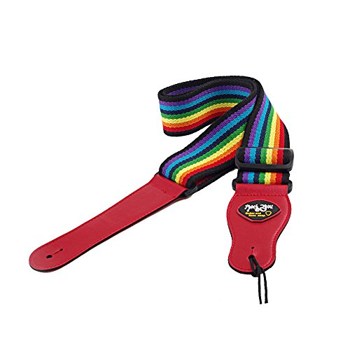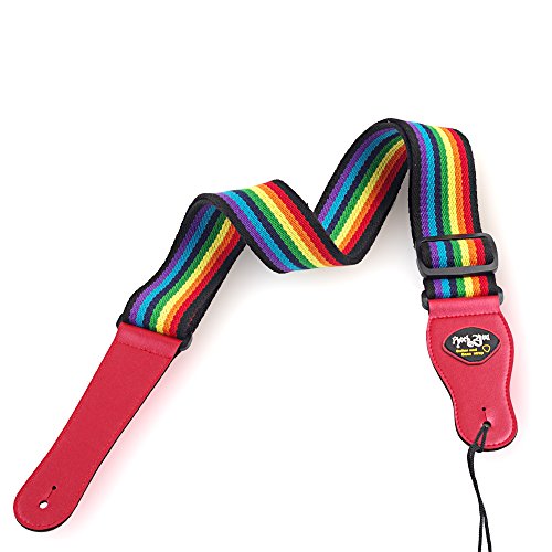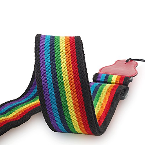 Guitar Strap, Rainbow Guitar Strap Cotton Adjustable Strap for Electric & Acoustic Guitar ,Bass with Leather Ends and A Pick Holder