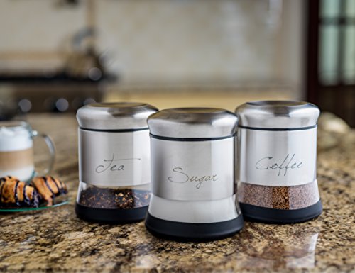TOP RATED CANISTER SET: Conveniently designed, the ideal canister set for tea, coffee, sugar and more! It is guaranteed to be the best canister set you have ever used. Home Fashions Canister Set keeps your tea, coffee and sugar fresh due to its uniquely designed rubber airtight sealing lid. When you purchase this elegant tea, coffee, sugar canister set you will not be disappointed or your money back. We can guarantee you will not go back to another canister set after using this one!