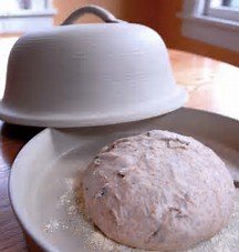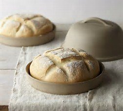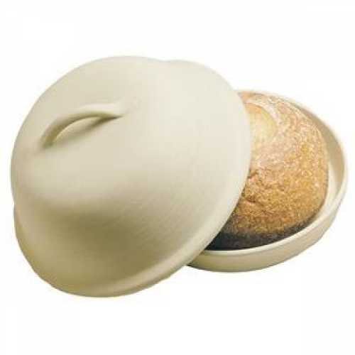 SuperStone La Cloche bakeware results in lighter, crustier bread and can also be used for cooking juicier fish and meats. The dish also doubles as a rustic serving plate. To use, arrange dough or meat on the bottom dish, cover with the domed lid, and place in the oven on the lowest oven rack. Be sure to spray the dish and lid before use with a coating of cooking oil for best results. The La Cloche Baker utilizes the steam generated by the moist dough within the bell, resulting in a delicious bread with a crackly, golden crust and light texture. Great for cooking roasts, chicken, and fish as the flavors of the natural juices circulate within the dome, preserving moisture and enhancing flavor. Base measures 11" (L) x 11" (W) x 2" (H). Measures 8" high with dome in place. Baking Cloth Instructions: the linen/cotton blended cloth should be placed over a bowl while the bread rises and can also be used for rolling out dough. Flour thoroughly before use and just shake out the flour to reuse. To wash, rinse without soap and hang dry.Feature