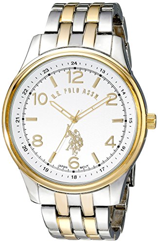 -. Binding : Watch -. Brand : U.S. Polo Assn. -. Department : mens -. EAN : 0030506373117 -. Feature : Two-tone round watch with logoed face, gold-tone Arabic numerals and skeleton hands, and seconds printed at outer track / 45 mm metal case with glass dial window / Quartz movement with analog display / Alloy band with fold-over clasp / Not water resistant -. Label : U.S. Polo Assn. Classic -. Manufacturer : U.S. Polo Assn. Classic -. Model : USC80302 -. MPN : USC80302 -. PackageQuantity : 1 -. PartNumber : USC80302 -. ProductGroup : Watch -. ProductTypeName : WATCH -. Publisher : U.S. Polo Assn. Classic -. Studio : U.S. Polo Assn. Classic -. Title : U.S. Polo Assn. Classic Men's USC80302 Analog Display Quartz Two-Tone Watch -. UPC : 030506373117