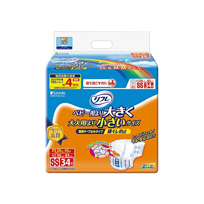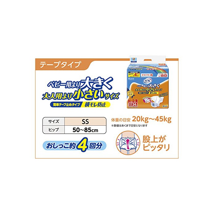 원본상품명: リフレ 簡?テ?プ 止めタイプ?モレ防止 SSサイズ 34枚【ADL?分:?て過ごす事が多い方】