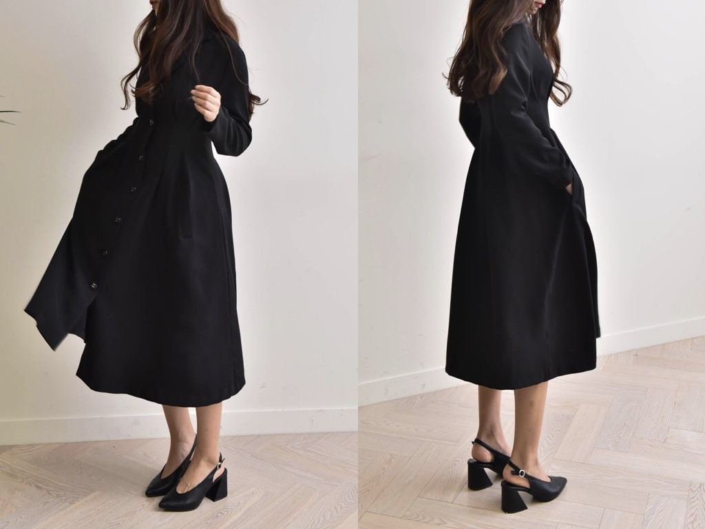 「ふわっふわ」としたワンピースです。スカーフなどとコーディネートすれば、上品に仕上がります。とても丁寧なつくりとなっており、ゆったりと着ることができます。1.基本情報色:2色展開(ブラック/ワイン)サイズ:Free素材:ポリエステル製造国:Korea2.サイズ情報肩幅:41cm 身幅(胸断面):40cm 腕の長さ:58cm着丈(前):113cm(サイズは計る方法に応じて±2〜3cmの誤差があります。ご了承お願い致します)モデル着用サイズ:F※着用モデル(163cm、体重47kg、足のサイズ24.5cm)3.その他の情報厚み:中間透け感:なし伸縮性:なし裏地:なし洗濯方法:ドライ(クリーニング)[注意事項]・お取り寄せ商品は、納品まで約10日前後いただきます。ご了承お願い致します。・また店舗でも販売しており、在庫切れになる場合もございます。ご了承お願い致します。